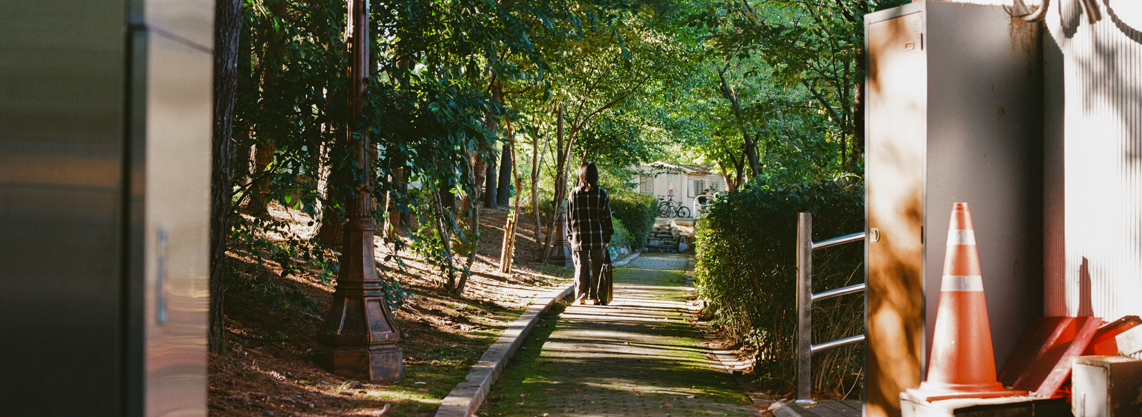 Shot with 35mm film inside a 120 camera, the wide cinematic aspect ratio turns a single moment into a scene - holding both emotion and narrative within.